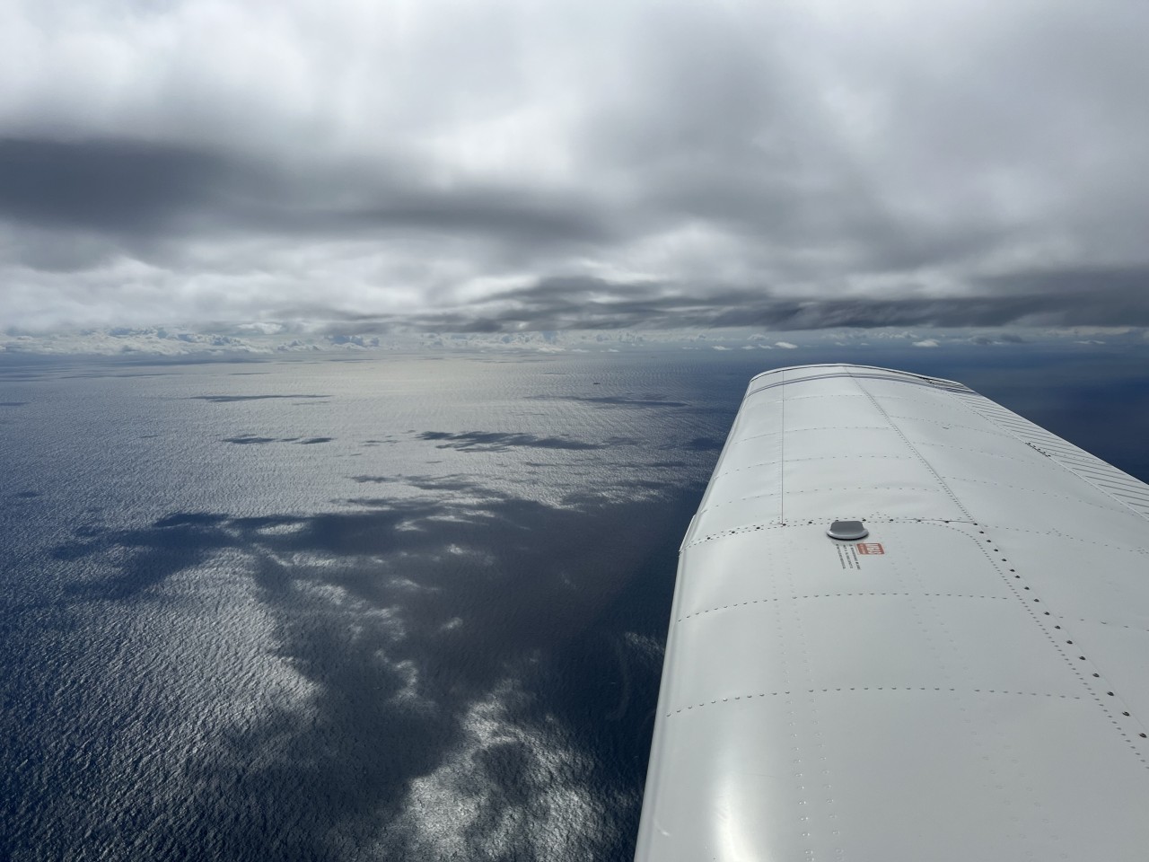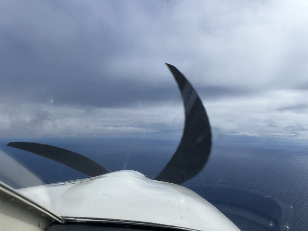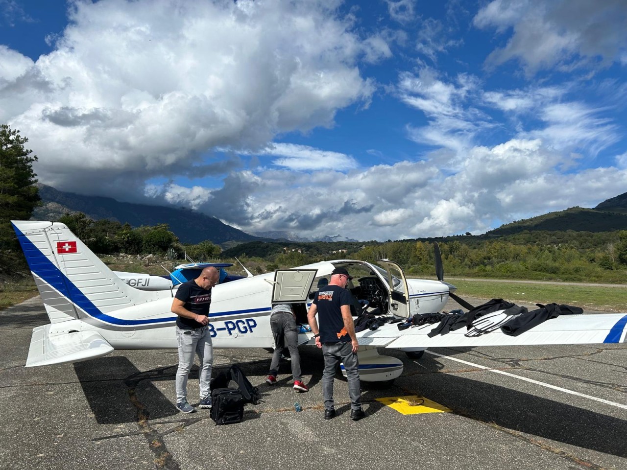 La météo pour la traversée maritime étant correcte sur sa partie ouest, nous décidons de poursuivre vers Corte sans attendre de savoir si la grève serait reconduite à 16h00 ou pas. Nous nous faisons le plein et repartons vers Corte (où il n'y a pas d'AVGAS disponible), non sans avoir organisé un taxi pour nous prendre à l'aérodrome. La traversée vers la Corse se passa magnifiquement bien, nuages hauts, très bonne visibilité. Par contre, l'arrivée sur l'île se compliqua un peu, car la météo ne s'était pas franchement améliorée (contrairement aux prévisions) et l'entrée vers le centre de l'île fut à l'image de la descente vers Gap. À l'arrivée à Corte le centre de plongée de Calvi nous informe qu'un énorme éboulement a eu lieu sur la route entre l'Île-Rousse et Calvi ce qui imposera un détour par les petits villages de montagne. Il est 13h30, la plongée prévue à 14h00 semble compromise... Mais le centre de plongée nous avait dit qu'il serait possible de plonger avant 16h00 si nous arrivons dans ces heures-là.