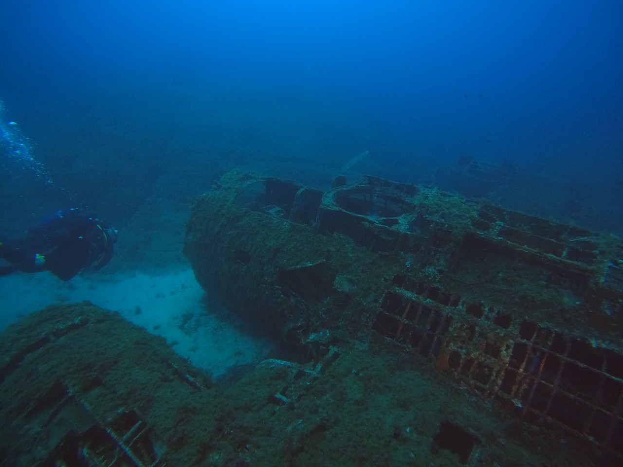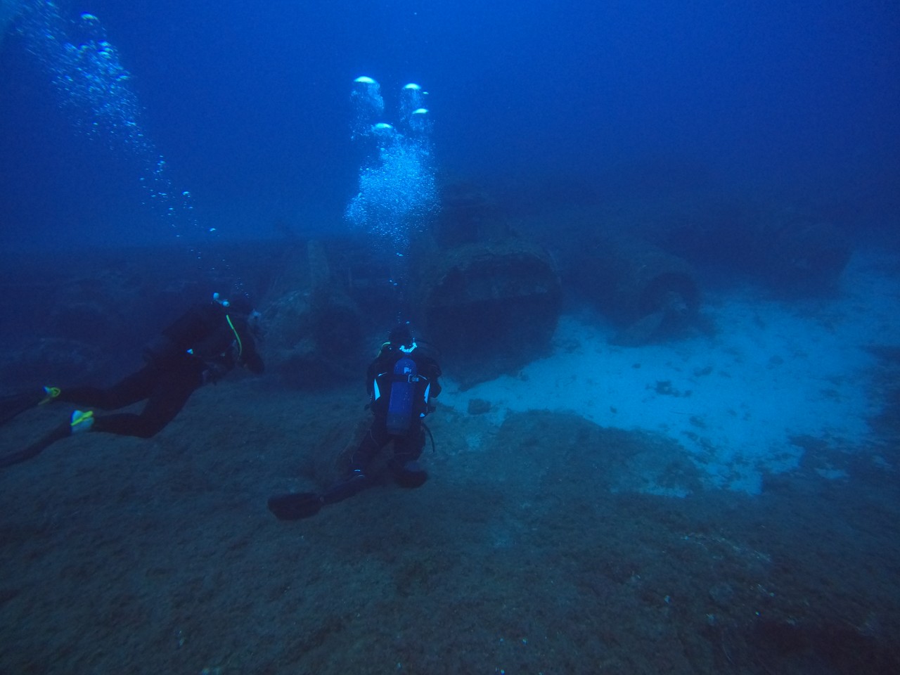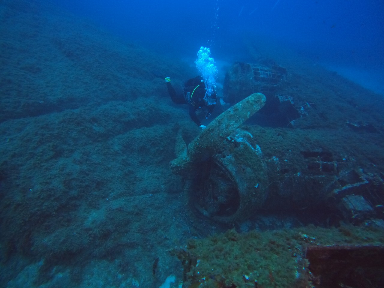 Le taxi commandé à midi depuis Cuers pour 13h30 arrive à 14h00... Le trajet Corte-Calvi dure 45 min de plus et nous en arrivons à 15h50 à Calvi. La course de taxi passe également de 170 à 260 euros à cause du détournement. Passage express à l'hôtel pour y lancer nos affaires. A 16h00 nous sommes au centre de plongée pour partir sur le B-17 en bateau privatif. Merci au centre de plongée Castille qui a bien joué le jeu dans cette journée quelque peu mouvementée et bien remplie. Les conditions pour cette plongée elle était parfaite nous avons éprouvé beaucoup de plaisir à plonger ensemble sur cet avion mythique. Au retour de celle-ci, après une bonne douche, la soirée fut à la hauteur de la journée passée, bien remplie, mais moins compliquée !